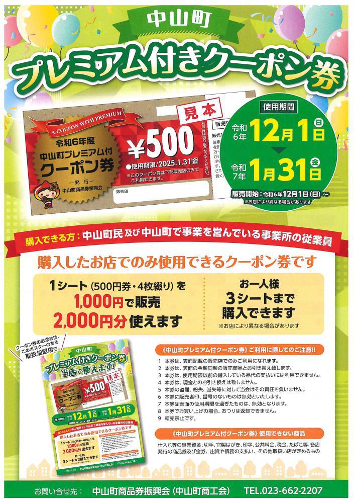 ●「中山町プレミアム付きクーポン券」のお知らせ