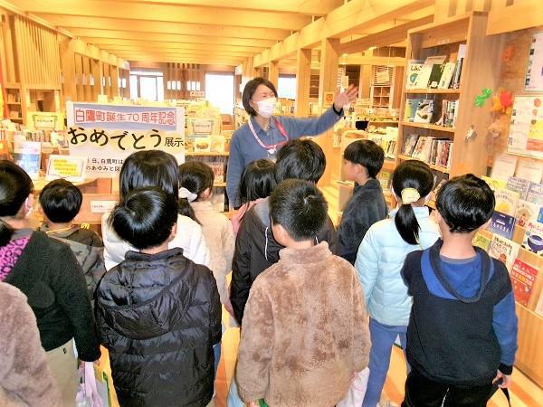 12月4日(水)、2年生の生活科校外学習として、町立図書館見学を実施しました。施設内の様子やそこで働く人の様子について、直接見たり聞いたりしながら学んできました。 今日は、実際に本を借りる体験もしてきました。お昼休みの時間、何人かに話を聞いたところ、借りてきた本を嬉しそうに見せてくれました。これを機に、学校の図書室だけでなく、町の図書館も大いに活用しながら、本に親しんでもらえたらと思います。ご協力いただきました図書館の皆様、ありがとうございました。