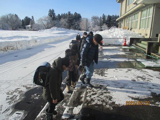 これは5日前の写真。 玄関がつるつるに凍ってるところに集まったこぐわっ子たち・・・ 先日のなわとび大会の記録も出ています。 今週末のEnglish Conversationに向けて、6年生が学習中。 まず声が出る。 確認すべきところはしっかり確認する。 この6年生から、小学校の正式な外国語活動が始まりました。4年間毎週英語に触れてきた学年です。自信をもって、28日を迎えてください。20人でいられるのは、あと2週間になりました。 そして今朝。6年生有志の雪片づけ。 3年生の、つげの木の雪おとし。 寒さの一山また越えて、こぐわっ子たちは、学年仕舞いに向かいます。