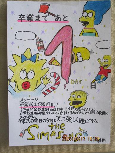 今朝、全員に修了証を渡しました。代表は、Aさん。 どの学年もとてもよい返事で、1年間または6年間、充実していたことを表しているなと思いました。 式辞では、かしこい芽、やさしい芽、たくましい芽、そしてふるさと思いの芽で、一番光っていた部分について、学年ごとの内容を話しました。(詳細は、本日の学校通信をご覧ください。)92名それぞれの成長がありました。207日間、子どもたちを笑顔で見送っていただき、ありがとうございました。 1年間の皆出席、6年間の皆出席の紹介。写真の2名は、6年間毎日毎日登校しました。これもご家族の支えあってのことです。ありがとうございました。 この1年間、運営委員として特にあいさつに力を入れてきたKさん。在校生に、さらなる良いあいさつを、託しました。 文武両方の表彰。みんな、輝いた証です。 なんと、今年で退職ということで、感謝状をいただきました。6年生みんなで文を考えたそうです。今までいただいた中で、一番感激しました! 私からは、最後の最後まで「いのち」について話をさせていただきました。今回は、相田みつをさんの詩を使わせていただきました。 自分の番を、みんなに精一杯生きてもらいたい、それが私の願いです。 いよいよ明日は卒業式。6年生にとって1番大事な日です。 4・5年生、教職員みんなで準備し、用意は整いました。 明日、一番いい日になりますように!晴れますように!
