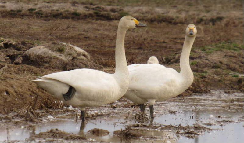 ●春を探しに 北帰行前の白鳥 散歩中に近所の田んぼに白鳥が70〜80羽ほどいるのを見つけました 近づいていっても逃げる様子がなくすぐそばまで近づいて観察することができました 間近で写真も撮ることができました じっと私を見ている白鳥もおりこれまでにない写真を撮りました まだ少し黒みがかった白鳥はまだ大人になっていない白鳥ですが間もなく北に帰る力を蓄え帰る準備のために餌をついばんでいます