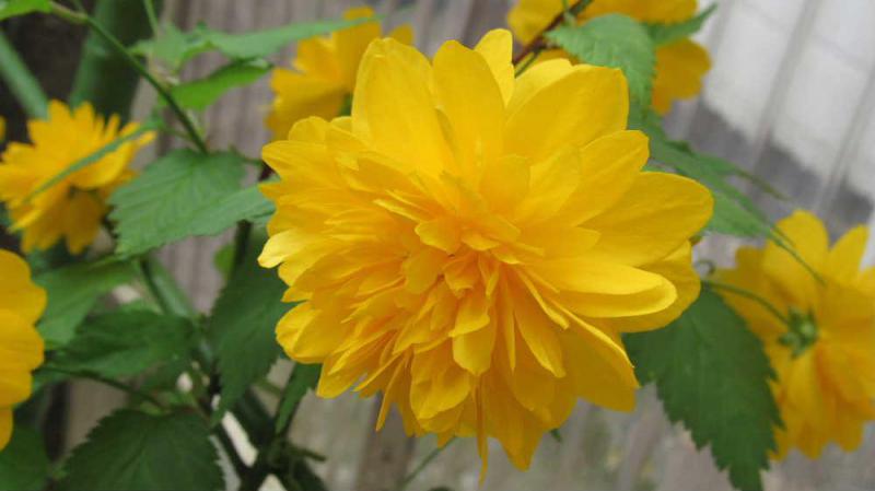 ●八重のヤマブキが咲き始めました 鉢植えを地植えしたヤマブキがこれまでにないような大きな花を咲かせてくれました 例年になく早い開花で多くのツボミが次々と花をさかせてくれそうです。地植えしたばかりですが枝を伸ばして 伸ばした先に一個だけ黄色の花を咲かせますが 黄色の壁面になってくれそうで楽しみです