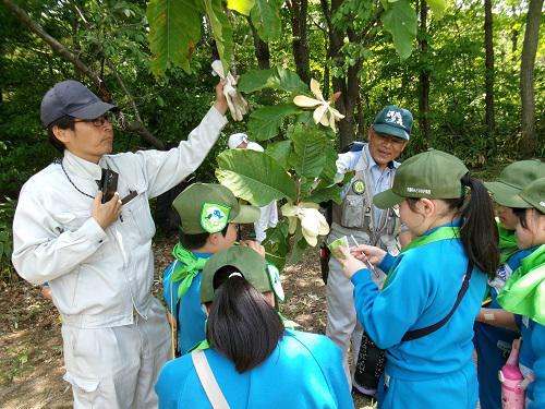 5月21日(水)今年度も、4・6年生が宝山で、また去る5月15日(木)16日(金)に5年生が飯豊自然の家で行われた宿泊学習の中で、緑の少年団活動の一環として自然体験学習を行いました。インストラクターの講師の方顔負けの知識で植物を説明する子や、「前に教えてもらった植物だね。」と話す子の姿に、講師の先生方も嬉しそうに笑顔でご指導くださいました。この活動の学びが、のちに地域の、そして世界の自然環境を守る子供たちの育成につながっていると思うと、ワクワクします。宝山の活動には、「一枚の絵〜リメンバー宝山〜」の歌を歌っている金田さんも参加してくださり、生演奏を披露してくださいました。素敵な歌声をありがとうございました。