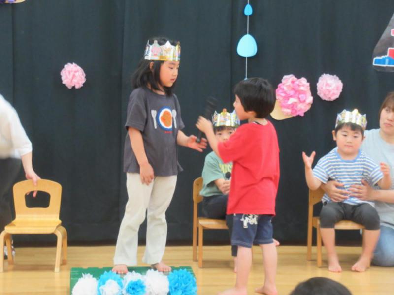 6月は8名のお友だちの誕生日をお祝いしました。緊張しながらも、保育者と一緒にインタビューに答えたり、得意なことを発表したりと、かっこいい姿を見せてくれました。 保育者からの“おたのしみ”は『傘シアター』傘に隠れた虫たちが次々に登場すると、虫が大好きな子ども達は大喜び!お祝いのカタツムリケーキも喜んで食べていました。 8名のみなさん、お誕生日おめでとうございます。☆インスタグラムには動画もアップしていますので、ぜひそちらもご覧ください。