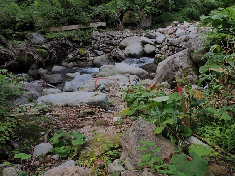 春先残雪を踏んでここの橋を渡り、冷水のリュウキンカの花畑に会いに行く.月山山麓にこんなお花畑が? と思わせる花畑である.橋は無惨流されてない。