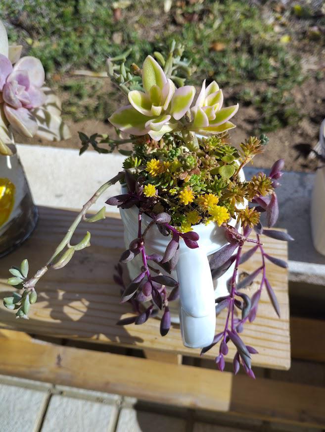 先日、岩部山の紅葉の様子をお伝えしましたが…公民館で育てている多肉植物たちも紅葉してきました!ルビーネックレスも濃い紫に、火祭りはその名の通り真っ赤に、ベビーサンローズも縁がピンク色に…(*'ω'*)秋麗もブロンズ姫も赤く色づいて、セダムのマンネングサまで黄色やオレンジに色が変わり、寄せ植えが華やいでいます。公民館にお越しの際には、秋の装いに彩られた多肉植物をぜひご覧ください(*^-^*)