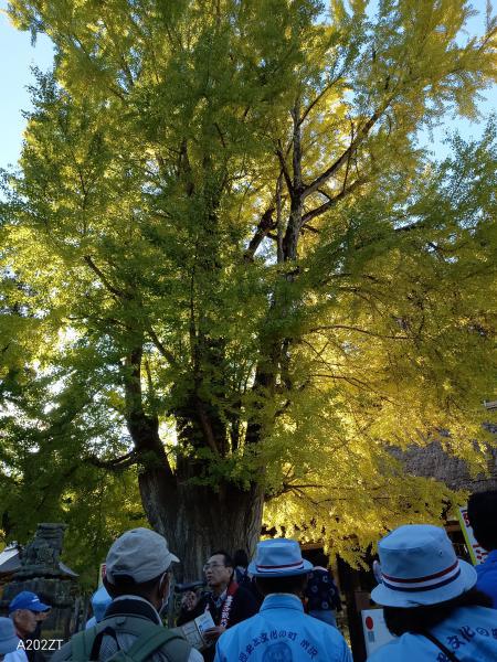 12日置賜地域観光ボランティアガイド研修会に参加、喜多方のボランティアガイドさんの説明で喜多方街中散策に新宮熊野神社長床に寄りました。ここは初めての場所でした。宮内にある熊野神社大イチョウは、県内有数の巨木で昭和31(1956)年11月24日に、県指定文化財(天然記 念物)に制定されている、源義家が後三年の役(1083 年〜1087 年、平安時代後期) での勝利の御礼に紀州熊野三所神を再び 勧請かんじょう した際、家臣の鎌倉権五郎景政に命じて 植えさせたものと伝えられていることから、樹 齢は 800 年以上に及ぶのではと推定されてい る。福島の熊野神社は天喜3(1055)年、源頼義が紀州熊野三社を勧請したと伝わる神社で、茅葺屋根の拝殿「長床(ながとこ)」は平安時代末期の建築で、国の重要文化財に指定されているとのこと・・現在も茅葺屋根というのも大変な維持ですよね、樹齢800年ともいわれる大イチョウ、晩秋になると落ち葉がまるで黄色いじゅうたんのように境内を美しく彩ります。ちょっと見頃になるには早かったようですが、見ごろ時期にはライトアップが行われるとのことだが、近くで熊が出たとのことでライトアップ中止との案内が出てました・・どこも熊で大変ですね・・