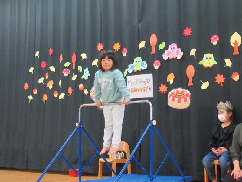 11月19日(水)11月生まれの誕生会が行われました。主役のお友達はインタビューに応えたり、得意なことを披露してくれました。みんなに沢山の拍手をしてもらいとても喜んでいました。職員のお楽しみは「もったいないばあさん」の劇。もったいないばあさんと、子どもたちのやりとりに子どもたちは目を奪われていました。11月生まれのお誕生日おめでとうございます