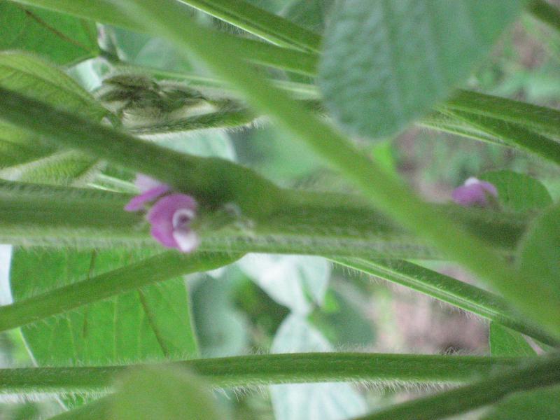 今日は秘伝豆のしっかりした株にかわいい紫色の小さな花が咲いているのを発見!