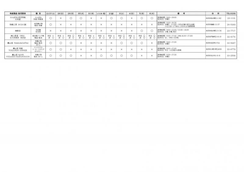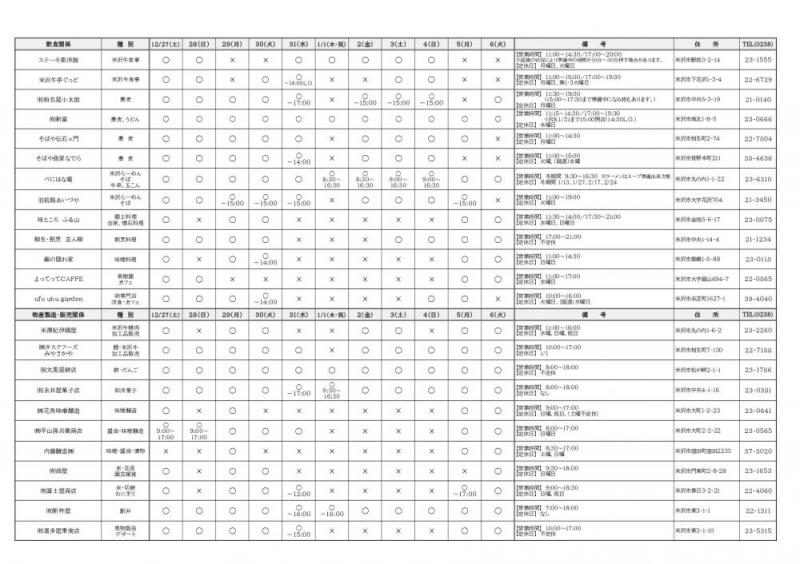 ●年末年始米沢市内観光施設飲食店営業情報【2025-2026】