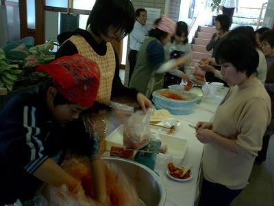 24日に作ったキムチを、役場と農協に分かれて売りました。種類はフルーツ入りキムチと普通のキムチです。キムチは全部売れました。たくさんの人がキムチを買いに来てくれてとてもうれしかったです。