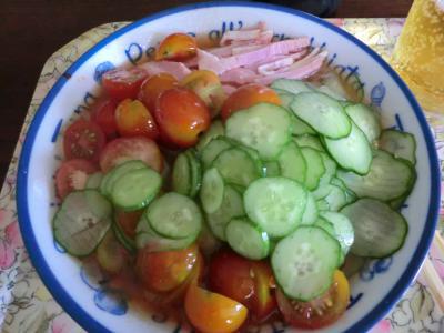 朝から雨です。しばらくぶりの雨なので 畑の作物も喜んでいるようです。特製の冷麺を作りました。真夏の冷麺です。我が家の畑のミニトマトをたくさん入れてみました。