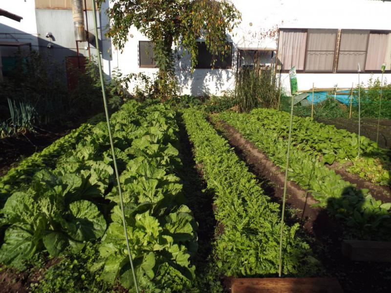 夏は葉物の野菜がすべて駄目だったので秋の葉物に挑戦しました。白菜、春菊、ホウレンソウ、茎たちが元気に育っています。白菜以外は食べごろになり毎日食卓に出ています。トマトもまだまだ生り続けています。本日の高畠は曇り時々晴れ 気温は16度前後です。夏と冬ものの衣料を交換しました。
