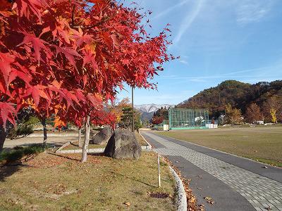 朝からいい天気に恵まれました。積もった雪もほとんど消えてしまいました。青空にモミジの赤がさえる天気です。