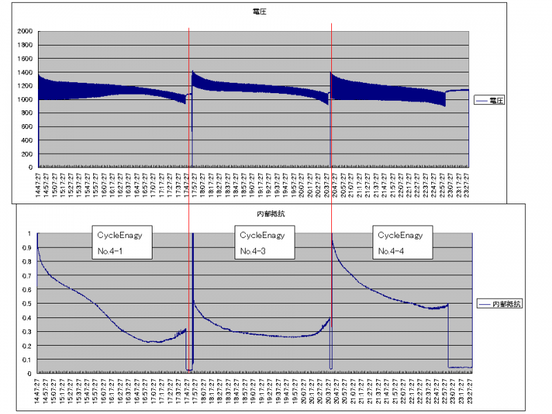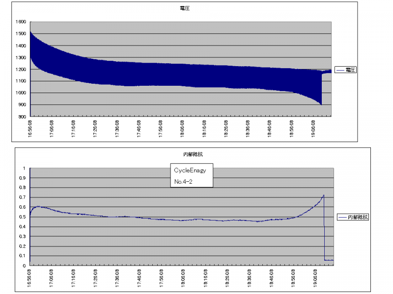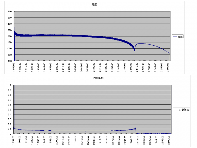 (実は、放電過程での内部抵抗の変化にも興味があった)