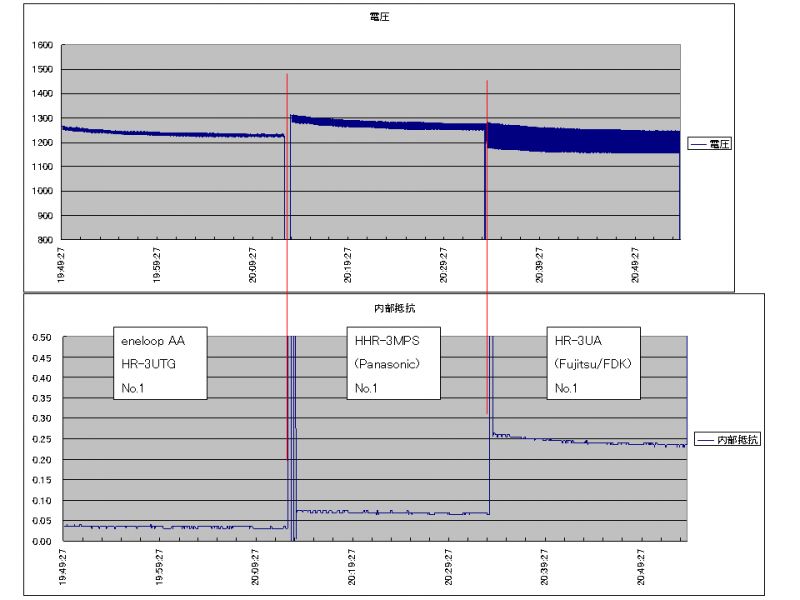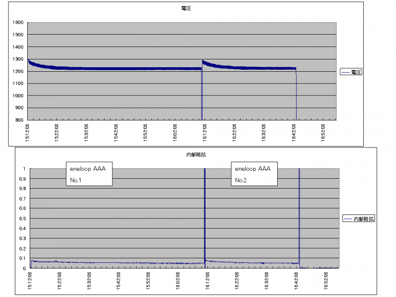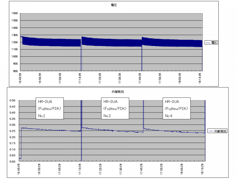内部抵抗のグラフ、単四のグラフとレンジ変えてます。