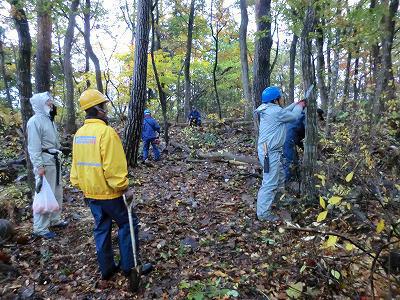 11月3日 伊達家統治時代の山城跡の散策道の整備があり参加しました。小雨模様でしたが もみじがきれいで気持ちよく整備課活動ができました。