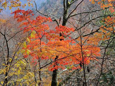 ブナの紅葉は黄色ですがあちこちにもみじの赤が入って幻想的です。晩秋のブナの原生林の静けさには心が癒されます。