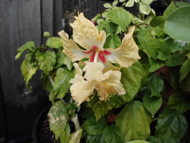 美蔵の玄関前にある「ハイビスカス」の花がこの寒さに負けず咲いております(^。^)vちょと、葉っぱが黄色くなってきておりますが・・・・花がしっかりとさいております。あまり寒いので店内にいれましたが・・・冬越しできるでしょうか???(たぶん無理)とにかく、長持ちさせてみますv本日は、暖かいので日光浴しております(^。^)