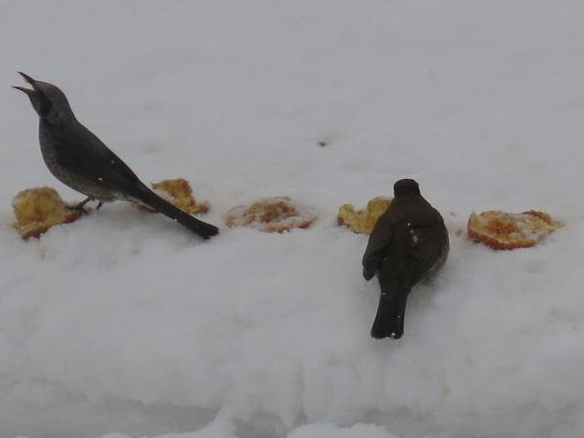 ●左はヒヨドリ 食事を楽しんでいますが、