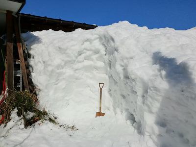 今日もいい天気で排雪日和です。屋根から降ろした雪の処理をしています。除雪機を使えば楽ですが運動の為 手作業で裏の小川に捨てています。毎日 1-2時間の運動で鍛えています。おかげで酒も食事も進みすぎです。