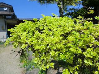 新緑がまぶしい季節がやってきました。庭の植木も元気に葉っぱを出してきています。まぶしいぐらいの鮮やかさです。