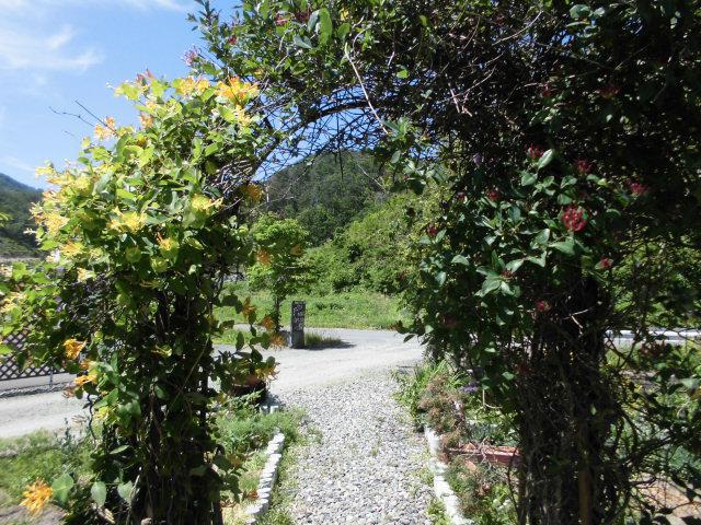 美蔵の庭の「バラアーチ」の「ロニセラ」の花が今週は 見ごろを迎えます(^。^)v今、黄色いロニセラの花が咲き次に赤いロニセラの花が咲きます。クレマチスやバラの花などが咲き始めて美蔵の庭も緑一色から色とりどりの花が見れるようになってきました(^。^)v今週が見ごろです。ぜひ、お越しくださいませ・・・・・(^^♪
