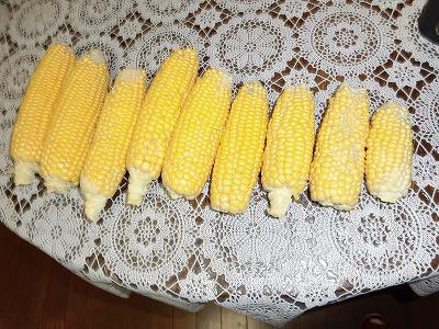 秋野菜と入れ替えるためすべてのトウモロコシを収穫しました。皮をむいてみるとさまざまなサイズになってとしまいました。まだまだ研究が足りないようです。