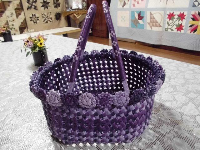 お客様よりご注文頂いた、バスケット・・・・・なかなか、完成が遅れてしまい・・・(>。<)やっとのことで完成したしました。紫の色がお好きなので、紫の色違いをたくさん使ってかわいいく仕上げてみました(^。^)v気に入っていただけるといいのですが・・・・・