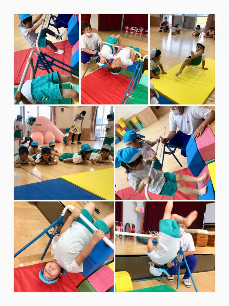 体操教室では、鉄棒、なわとびをがんばっているうさぎ組さん。