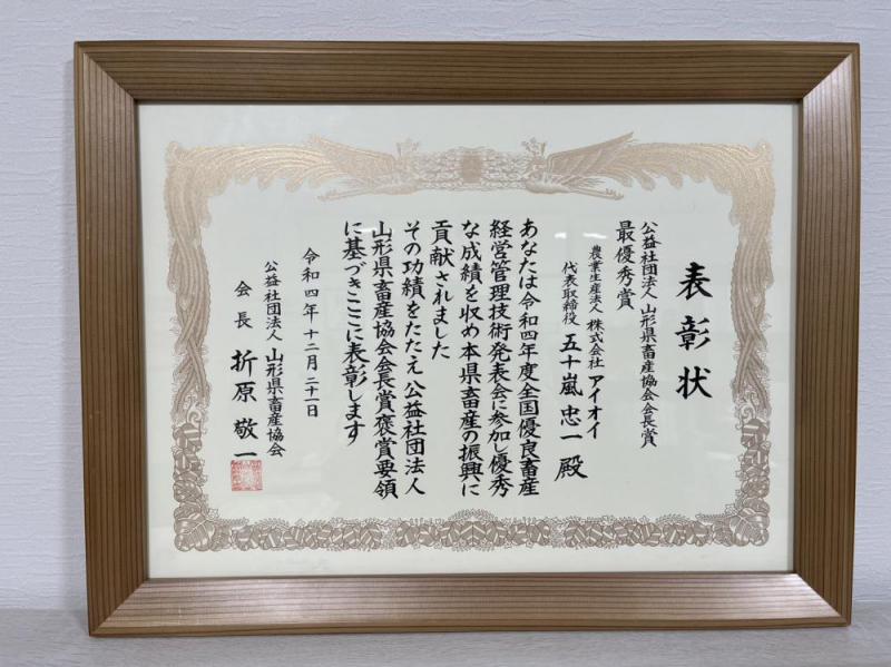 令和4年度全国優良畜産経営管理技術発表会にて山形県畜産協会会長賞最優秀賞を受賞いたしました。参照→山形県畜産協会
