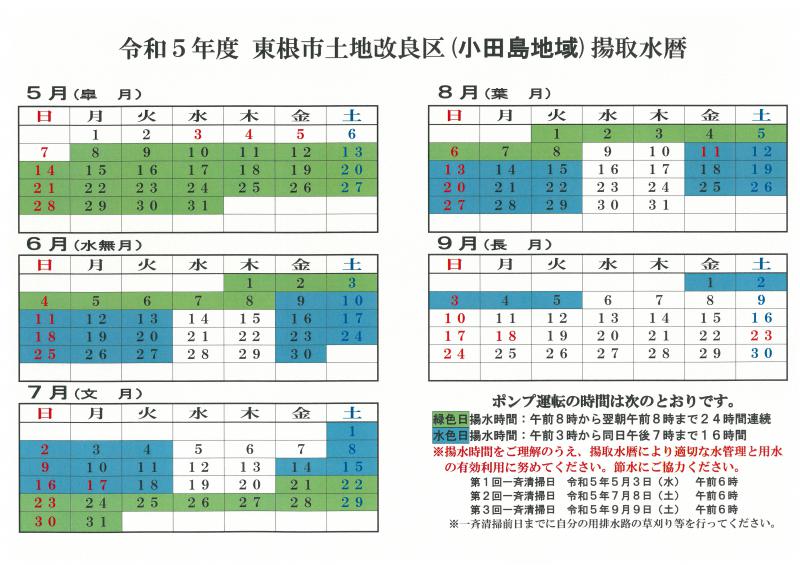 ●令和5年度小田島地域揚取水暦