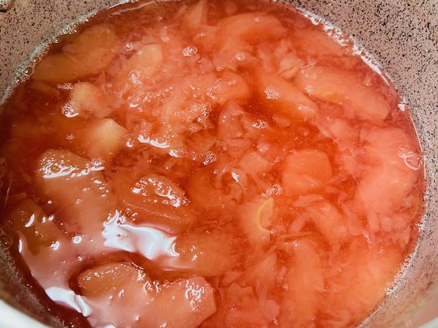 太田さんの「ふじりんご」の収穫が始まりました。今シーズンは、春の遅霜、夏の酷暑、そして収穫直前の突風に見舞われりんごにとってはとても厳しい環境でした。それでも収穫されたりんごは、夏の酷暑を越えとっても甘く、程よい酸味もあってシャキシャキした歯ごたえと申し分ありません。そこで、今年始めて「太田さんのりんごのパフェ」を作ることにしました。まだ、思案中ですが、「りんごパフェ」になくてはならないのがりんごソース!というわけで・・・ひとあし早く「りんごソース」を仕込み中です。酸味の効いた紅玉のソースは皮も使って、ピンク色に仕上げました。どんな「りんごパフェ」に仕上がるのでしょう。。。もう少々お待ちくださいませ。「太田さんのりんごフェ」は12月から販売予定です。がんばります!!