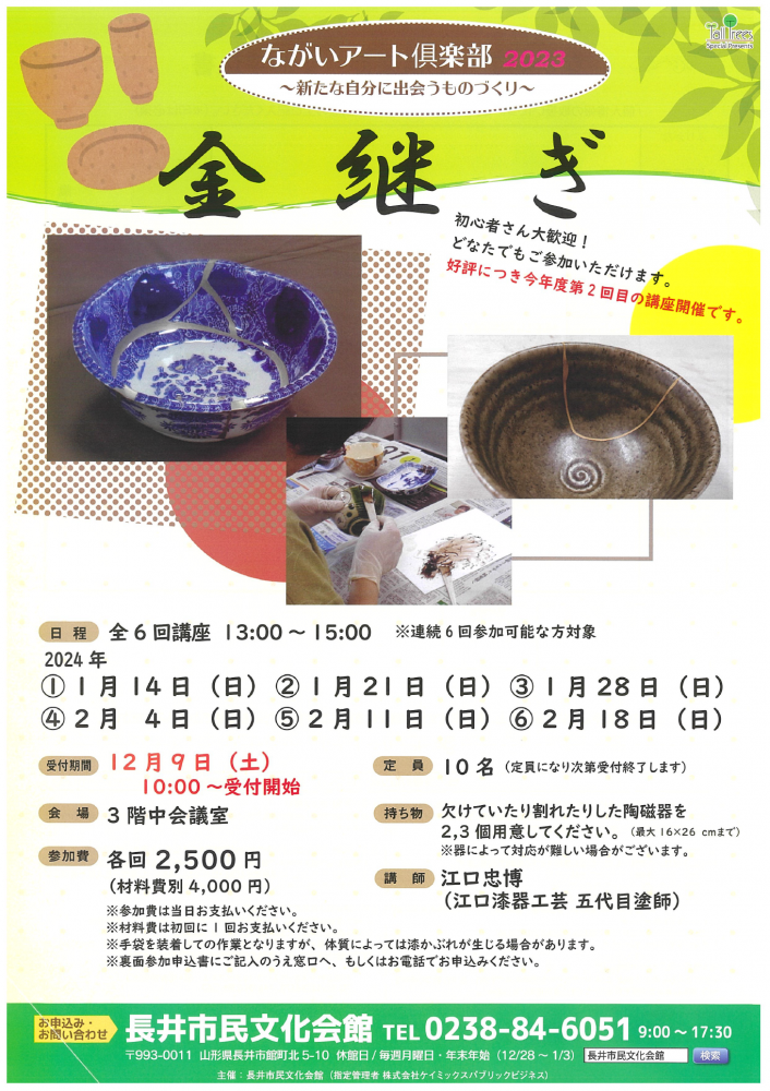 ●【ながいアート倶楽部2023「金継ぎ」開催のお知らせ】
