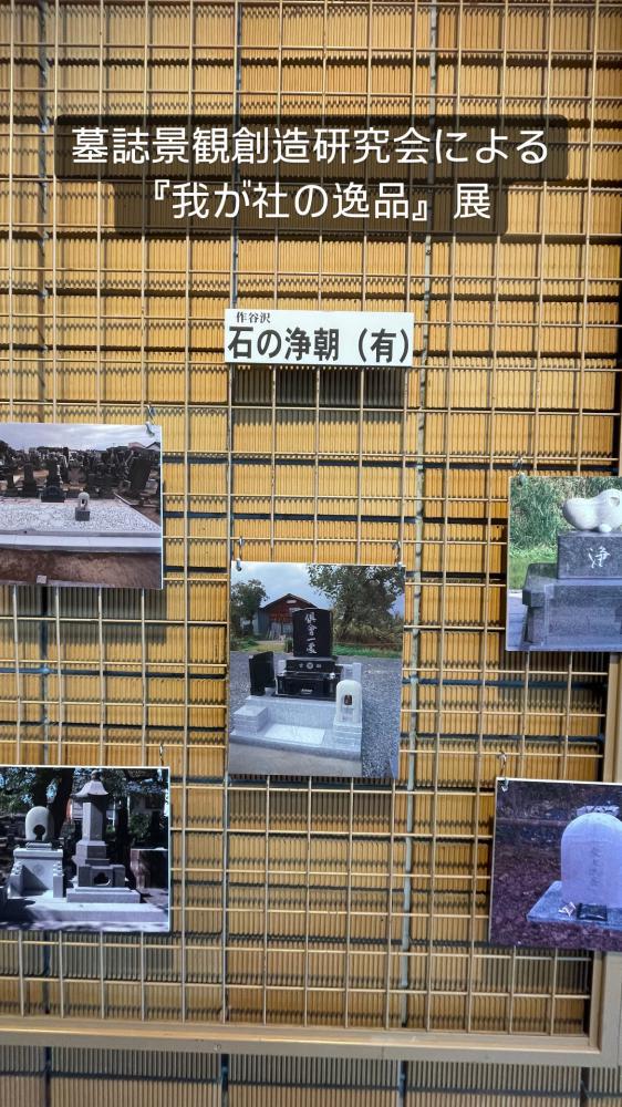 本日、『親子三人展』の作品撤収作業が無事に終わりまして、引き続き、墓誌景観創造研究会による『我が社の逸品』展を4日から9日まで展示中です!弊社作のパネルも展示中ですので、ご覧になっていただき、もし気に入っていただけましたら『石の浄朝』に投票をよろしくお願い致します!!投票用紙はブース左側に設置してあります!