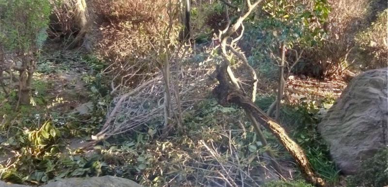●剪定した木が庭に山盛り散らかってます。