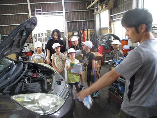 自動車の修理の様子を見せていただきました。 ほ〜・・・! 重い自動車を持ちあげての修理、感心するしかありません! 珍しい場面ばかり。 みんなでパチリ! 朝から出かけて蚕桑の中を探検し、 たくさん学んで帰ってきました。 以上、子どもたちからの言葉です。 私たちが住んでいる蚕桑。様々な仕事があって、民様がいろんな思いで働いていらっしゃることがわかりました。もっともっと蚕桑のことを好きになって、大きくなったらみんなで盛り上げてほしいなと思います。