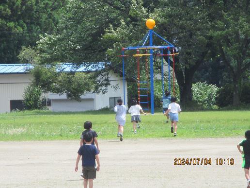 「今日から、新しい遊具が使えます!」という教頭先生のアナウンスに、「クライミングタワー」に駆け寄っていったこぐわっ子たち。 おーっ!スルスルいったね〜!このタワーは、蚕桑小学校創立100周年記念事業の一つで、地域の皆様からの協賛金に、後援会費から補助をいただいて設置したものです。 たのしいね〜!ちゃんと順番を守って、譲り合って使っていました。 地域の皆様、本当にありがとうございました。チャイムが鳴って5年生のGさんのつぶやき。・・・「これは、低学年向けだな。俺はもう年取った…疲れる…」あっはっは、では、私はもう化石ですね。 チャイムぎりぎりのできごとです。怖くてどうしてもこの遊具のネットに降りてこられなかったHさん。みんなの「大丈夫!」「頑張れ頑張れ!」の励ましで、そ〜っと降りることができました。もうこの次は、へっちゃらです!ひとつひとつ! この瞬間に立ち会うことができて、私もとてもうれしかった!