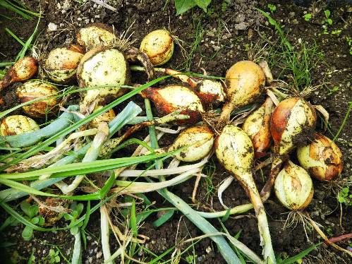 我が家の家庭菜園、長ネギと並んで玉ねぎも植えていて・・長ネギも数種類あって、どこがどこやら、わかんなくなってしまっていたけど、ネギの先が枯れて、しょぼんとなって・・・あっと・・ここが玉ねぎだったと気が付いて、今日収穫しました・・何の種類だったかも忘れて・・小さい玉ねぎでした