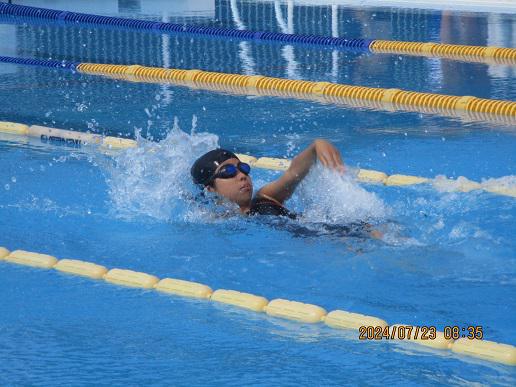 6年生の泳ぎから始まりました。最後の発表会、どの顔もいい顔です! 4・5年生も、思いきって泳ぎます。 スタート、心がきゅっと引き締まって・・・。 5年生の応援、よかったよ〜! 最後、学年対抗リレーです。 なんと一着は5年生!おめでとう!各学年とも必死で泳いで、とてもいいレースでした。ちょっと残った悔しさは、運動会ではらそう! 水泳発表会が終わるころには、雲と風が出て、気持ちよい気温になりました。6年生、みんなで最後に撮った写真は、あ・と・で・のお楽しみです。
