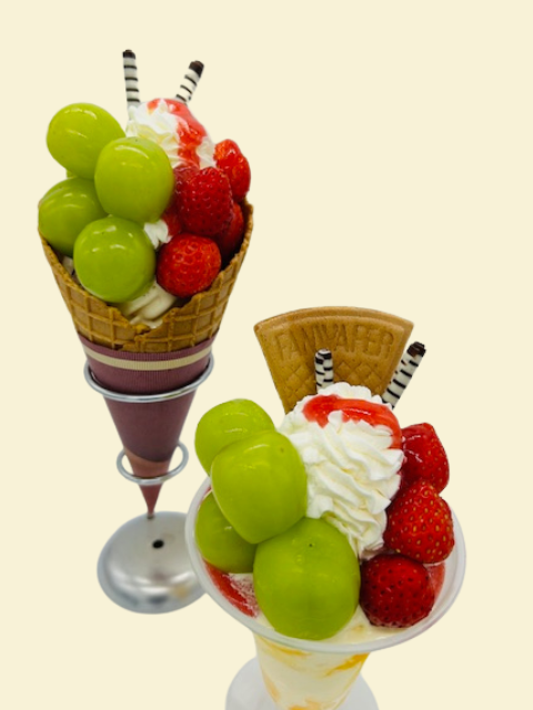 ●シャインマスカット&夏秋いちごパフェ1,425円甘いシャインマスカットと酸味の効いた夏秋いちごのコラボレーション♪
