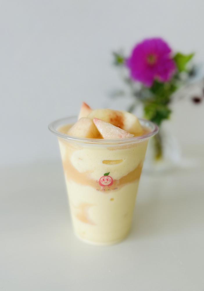 山形産の桃「あかつき」でソースを作ったら、やさしいピンク色になりました。「桃のシェイクができそう。。。」とスタッフKさん!!!という訳で「桃のシェイク」がメニューに加わりました♪気に入って頂けたらうれしいです。