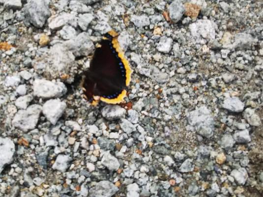 昨日、天元台高原で私は初めて旅する蝶”アサギマダラ”みました・・今年はなんか少ないなー・・写真は撮り損ねでしまったのですが、すと足元見るとキベリタテハ(黄縁立羽)が羽を広げたり閉じたりと、割と長い時間じっとしていて、近づいて写真撮れました。キベリタテハは、日本では中部以北の高原や山地に生息し、岩場などで吸水する姿や、暖かい冬の日には日光浴をする姿が見られる、愛好家には人気のある蝶です。成虫は樹液や腐果を主食とします。外縁に淡黄色の帯があるためこの名がついている