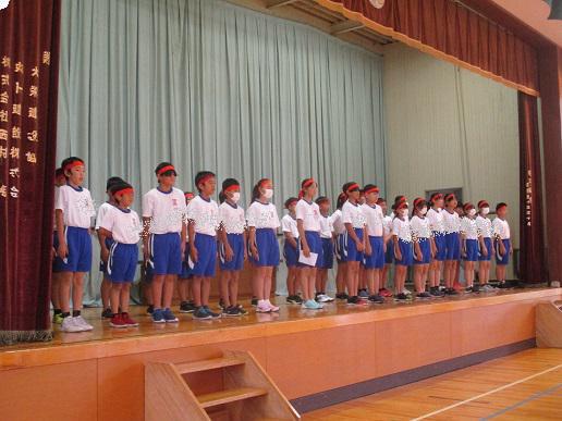10月8日の町陸上大会に向け、4年生が中心となり、壮行式を行いました。4年生のなんと堂々とした態度にあっぱれ! エールが始まりました! 5・6年生は、とても心強かったことでしょう! 選手代表のCさんの言葉も、みんなベストで戦ってきます!と頼もしかった。 校長も、4年生の力を借りて、激励しました。試合では、みんな心細くなるもの。でも、心を強くして戦ってくる秘訣を伝授しました。「強い人は・・・」 一つひとつ選手と読んでいきました。「絶対大丈夫!という気持ちをもって!」 「続け大谷!」 4年生、辛いとも言わず、しっかりメッセージを上にあげていてくれました。ありがとう! 5・6年生は、きっとベストの力で戦ってくることでしょう。 みんな、君たちを応援しています!