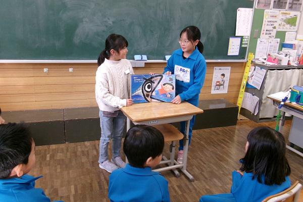 11月20日(水)、先日お伝えした「読書まつり」の企画のひとつとして、図書委員による読み聞かせが各クラスで行われました。それぞれの学年に合うような本を選んで、一生懸命読んでいました。手軽に動画を楽しめる時代となりましたが、子供たちには「本」だからこその感動やワクワク感もぜひ味わってほしいものです。秋の夜長、たっぷり読書を楽しんでくださいね。