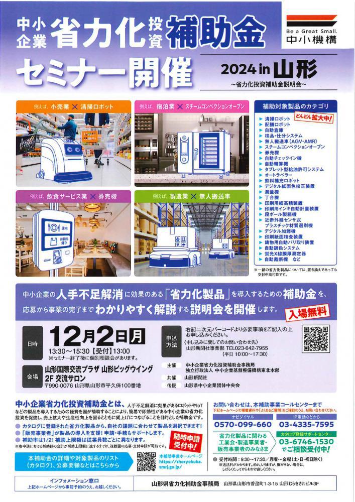 ●【補助金】中小企業省力化投資補助金セミナー開催のご案内