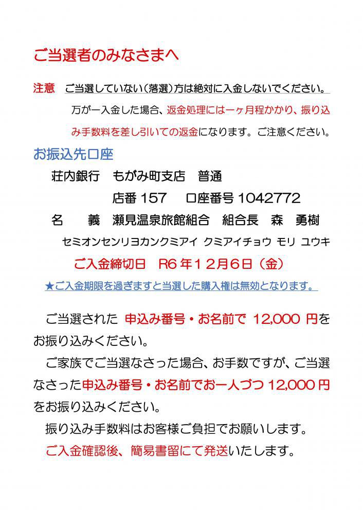 ●宿泊利用商品券抽選販売 当・落は26日15時以降確定します。
