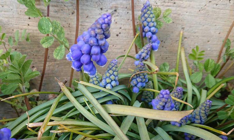 ●歩行者しか通れないような狭い路のそばの日当たりのよいところにぶどうのような鮮やかな紫色の花をみつけました 秋植え球根の「ムスカリ」ではないでしょうか 確か以前にもこの花を紹介したことがあるような気がしますが 植えっぱなしでも毎年きれいに咲く花です 背丈もあまり大きくなく春の花壇の縁取りにはもってこいではないでしょうか