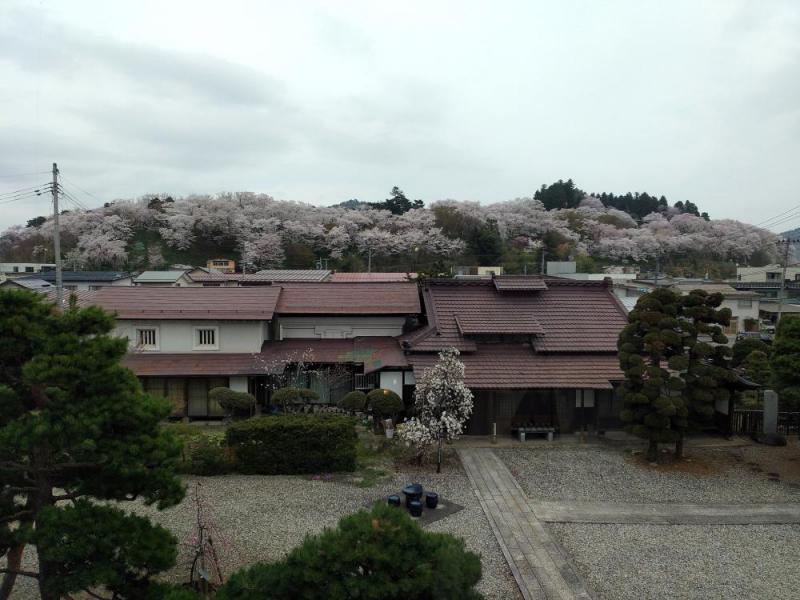 満開の烏帽子山です。雲はあるものの、穏やかな日差しで散策にはちょうど良い気温です。本日は烏帽子山八幡宮の春祭 三社祭が行われます。また、午前10時から商工会女性部による湯茶接待が、午後1時からは赤湯龍桜会の御神輿渡御と暴れ獅子太鼓が行われます。お天気は午後から少しずつ崩れる予報ですので、念のため雨具を持参されるとご安心でしょう。皆様どうぞ赤湯にお越しください。道中のご安全を心よりお祈り申し上げます。 赤湯温泉桜まつりが開催中です。期間中は夜間ライトアップも行われます。桜の開花状況や駐車場、各種イベント情報など詳しくは、下記をご参考ください。烏帽子山八幡宮様のX(旧Twitter)https://x.com/eboshiyama8南陽市HP http://www.city.nanyo.yamagata.jp/kankoibento/241南陽市観光協会 https://nanyoshi-kanko.jp/ 記念館中庭の結城翁生誕100年を記念して植樹された吉野しだれの桜は、まさに今日が見頃。金曜日の夕方にようやく一輪咲いたと喜んだのも束の間、昨日の陽気で一斉に開花しました。赤湯にお越しの際はぜひ記念館にもお運びください。皆様にもぜひ、2階ロビーの窓から一望できる烏帽子山の絶景をご覧いただければ幸いです。 ※記念館の開館時間は午前9時〜16時30分(入館受付は16時まで)入館無料・月曜休館 お問い合わせは 電話0238−43−6802まで