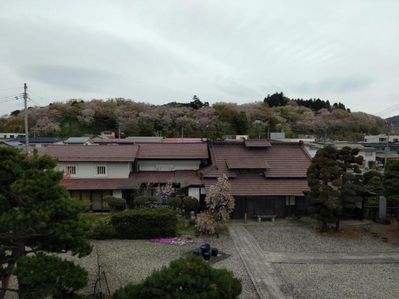 風が吹くごと、桜の花びらがはらはらと舞っています。赤湯の桜は終盤ですが、市内でも荻や吉野地区では今が盛りとのこと。「小滝街道(現 山形県道5号山形南陽線)を走ると道々に満開の桜を拝むことができる、快適なドライブを楽しめるよ」と教えていただきました。道中のご安全をお祈り申し上げますとともに、美しい自然豊かな街道を花見とともに満喫いただけましたら幸いです。 今年の「桜だより」は、本日をもちまして終了させていただきます。たくさんの方にご覧いただきましたこと、心より御礼申し上げます。置賜は、これから躑躅、薔薇、菊とさまざまな花が咲き誇ります。また、サクランボやブドウ、ラ・フランスなど多くの実りの季節を迎えます。結城翁の愛したふるさと南陽に、皆様がお越しくださるのを心よりお待ち申し上げております。